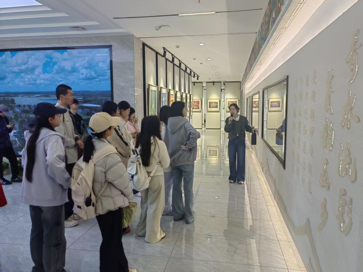 走进菱珑湾景区村庄,这片江南水乡湿地明珠尽显生态之美与文化底蕴。师生漫步水网交织的村落,欣赏省级非物质文化遗产秀洲农民画,观摩糖糕版雕刻、造船技艺等传统工艺,亲身感受艺术赋能乡村振兴、文化传承助力共同富裕的鲜活案例。大家在小桥流水间品读江南韵味,在非遗传承中坚定文化自信,深刻理解人与自然和谐共生、传统文化创造性转化与创新性发展的时代价值。
