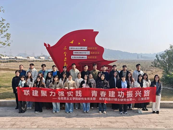 11月23日,马克思主义学院研究生党支部部分党员与商学院会计硕士研究生第一、二党支部党员代表前往海盐县开展“联建聚力强实践、青春建工振兴路”联合主题党日活动。