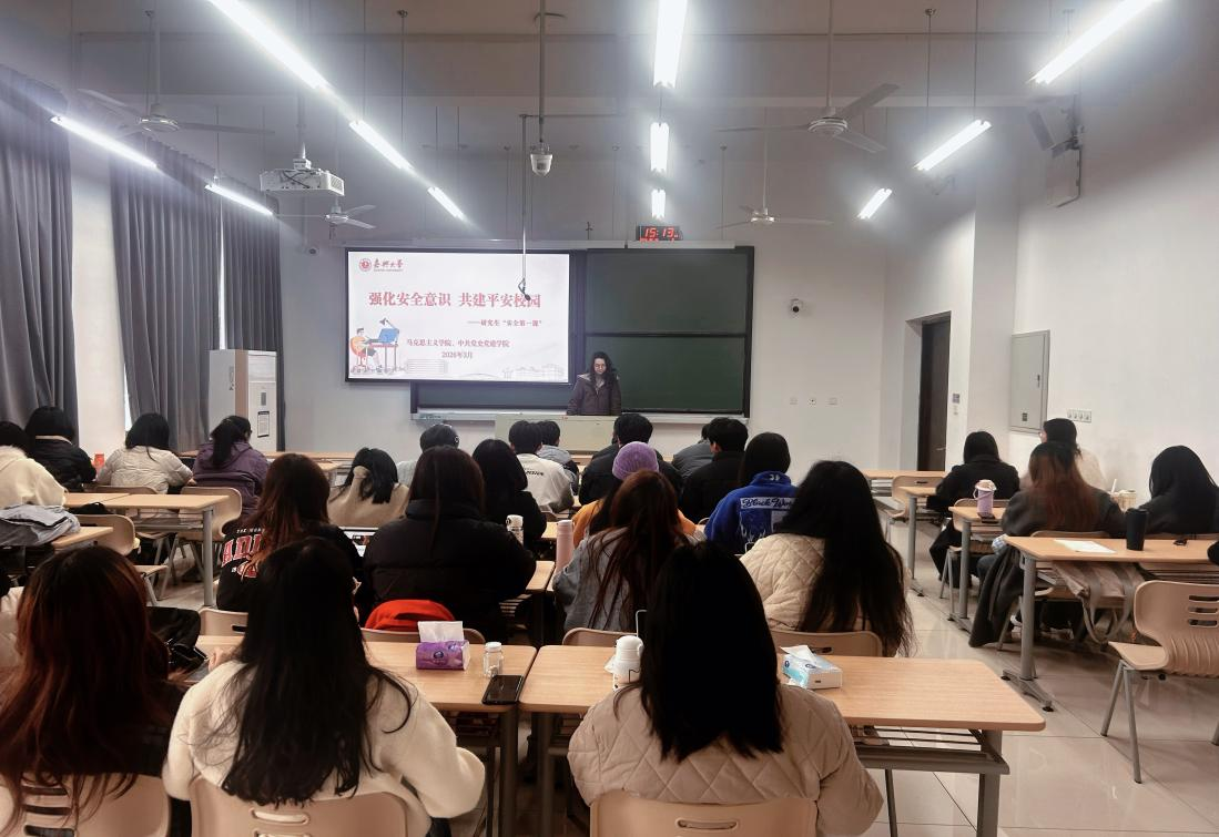 为深入贯彻落实学校关于研究生安全工作的各项部署要求,切实筑牢研究生安全思想防线,全面提升研究生安全防范意识、自我保护能力和文明素养。近日,马克思主义学院、中共党史党建学院面向全院102名研究生,组织开展“安全第一课”专题教育活动,为新学期研究生安全稳定工作开好局、起好步,为研究生健康成长保驾护航。